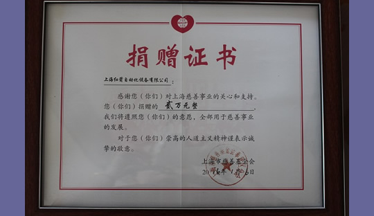 2015年,上海紅箭自動(dòng)化設(shè)備有限公司為上海市慈善基金會(huì)捐款